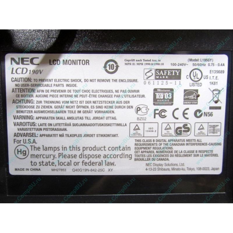 Монитор Б/У 19" TFT Nec LCD190V 1280x1024 (5:4), цвет черный + серебристый. В правой части экрана есть несколько царапинок.