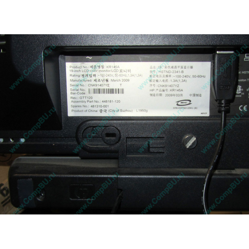 Монитор 19" HP L1950g part no. 448181-120, spare no. 481310-001 со звуковыми колонками HP SP03A01 (part no. 395923-001, spare no. 396073-001).